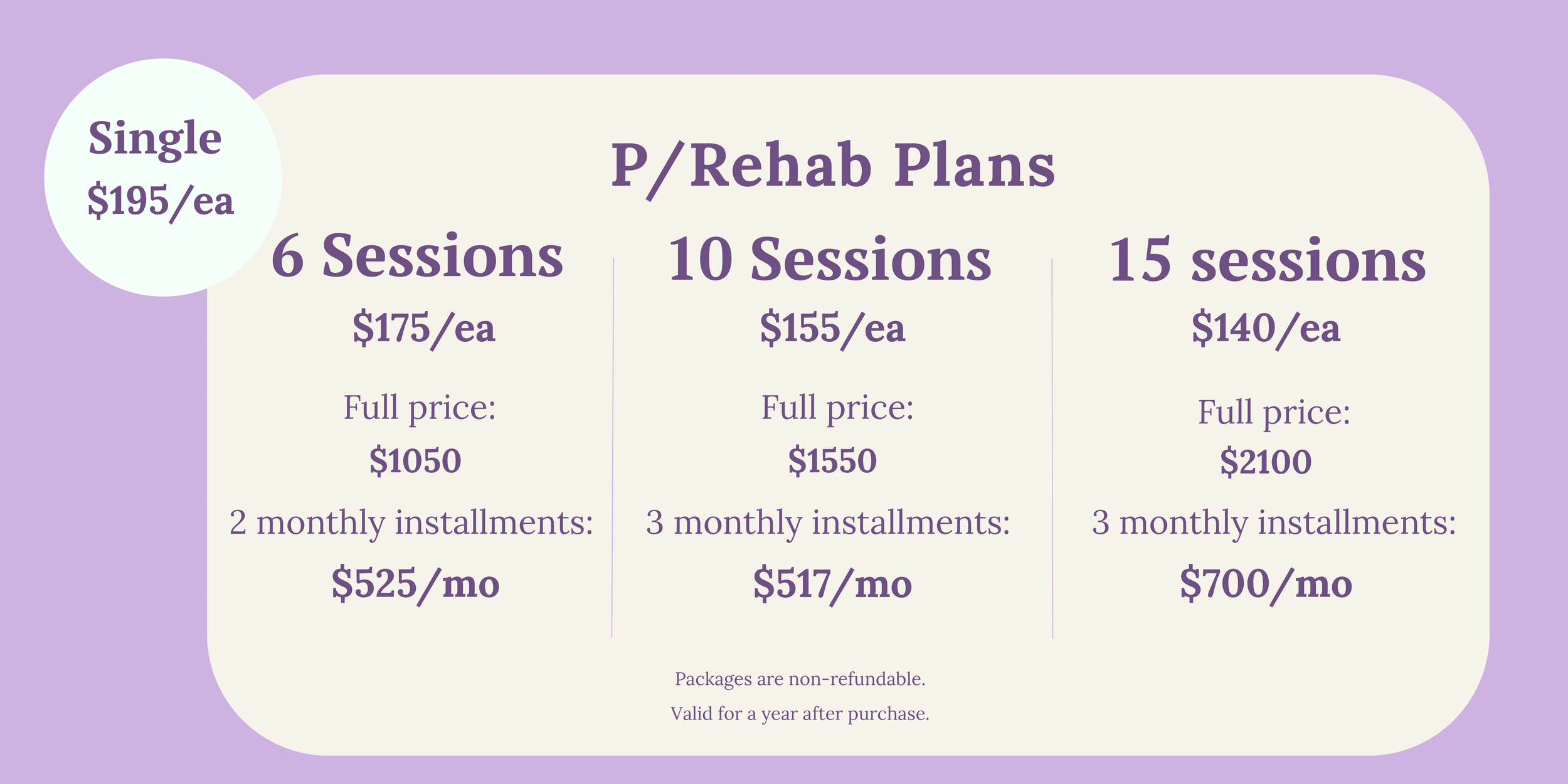 Physical Therapy Evaluation: At your first session, your physical therapist will have an in-depth discussion about your history and goals, perform a thorough assessment including assessing range of motion, strength, movement patterns, etc., and develop an initial game plan for you.